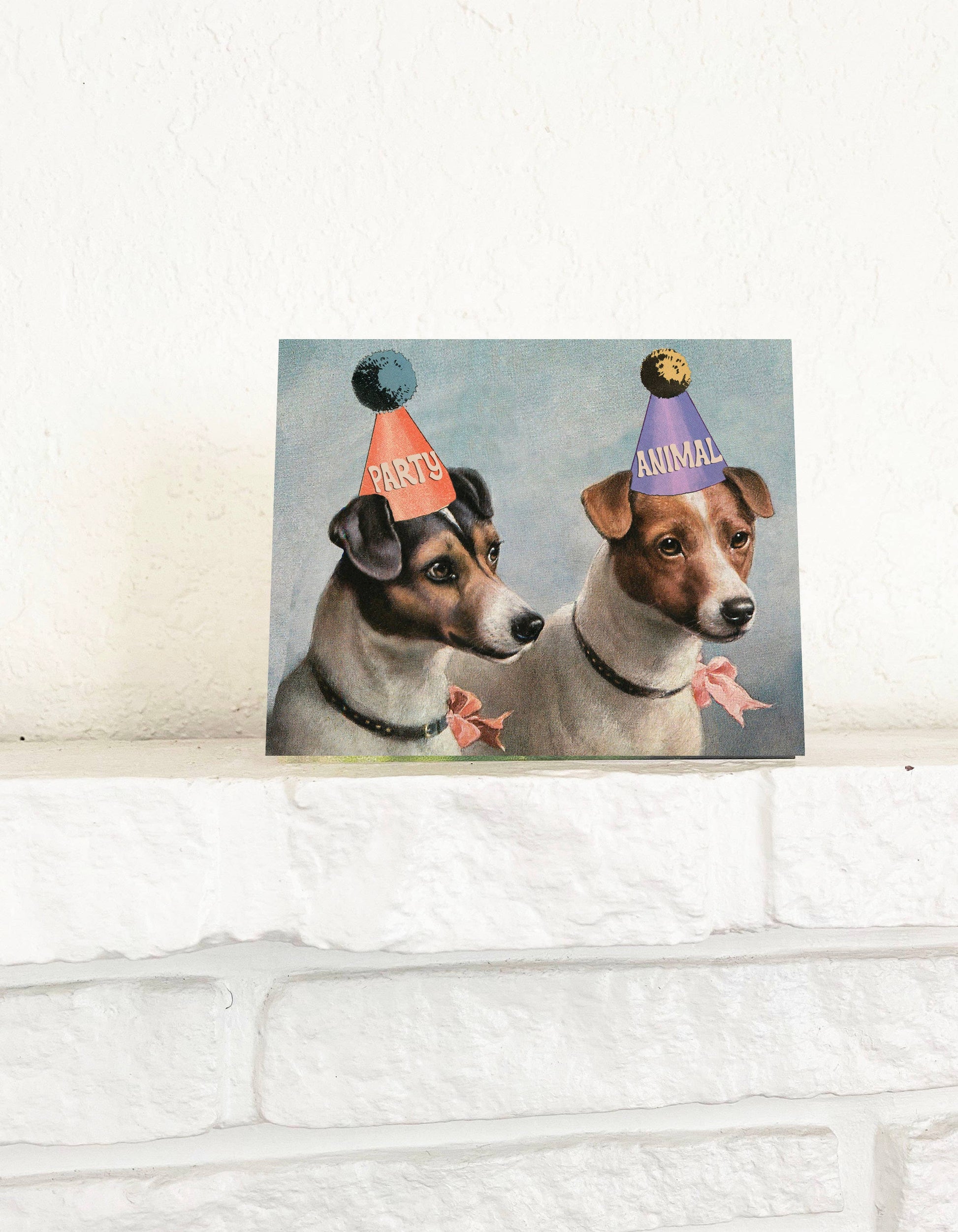As the Beastie Boys once famously said, "You gotta fight for your right to PAAAAAAARRRRRRTTTTTYYYY". The party dogs are ready to get down. Perfect for graduation, birthdays, retirement, any occasion where you want to party! Featuring two vintage style dogs with party animal hats and the cutest little expressions on their faces!