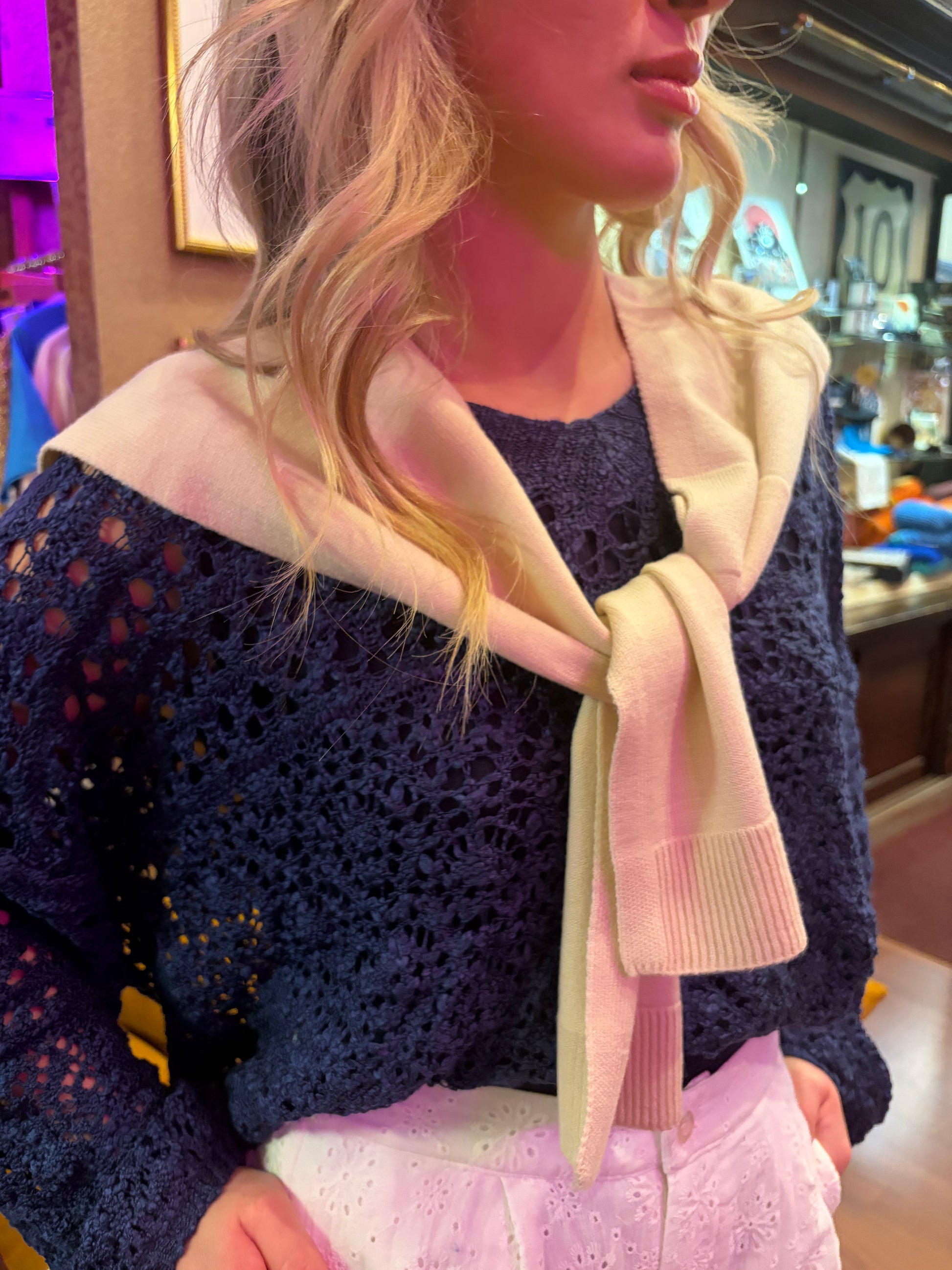 That's a Wrap! is the sweet layering piece that feels like wrapping your favorite cozy sweater around your shoulders—except it's designed to stay put. This soft, beige knit wrap drapes beautifully over any outfit, adding warmth and texture without the bulk. Perfect for transitional weather or when you want that "just-tied-it-on" vibe without any actual tying required. Versatile enough for casual days or dressed-up occasions.